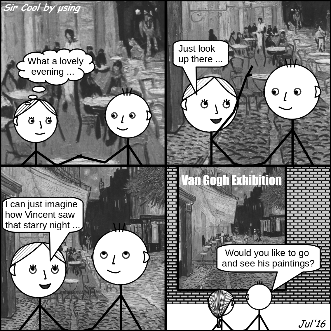 Even though the stars in the Café Terrace painting don’t really compare to those featured in Starry Night, I am intrigued by the idea of looking up at the stars in a Van Gogh world. Standing in front of a poster was the nearest thing I could realistically imagine to draw …