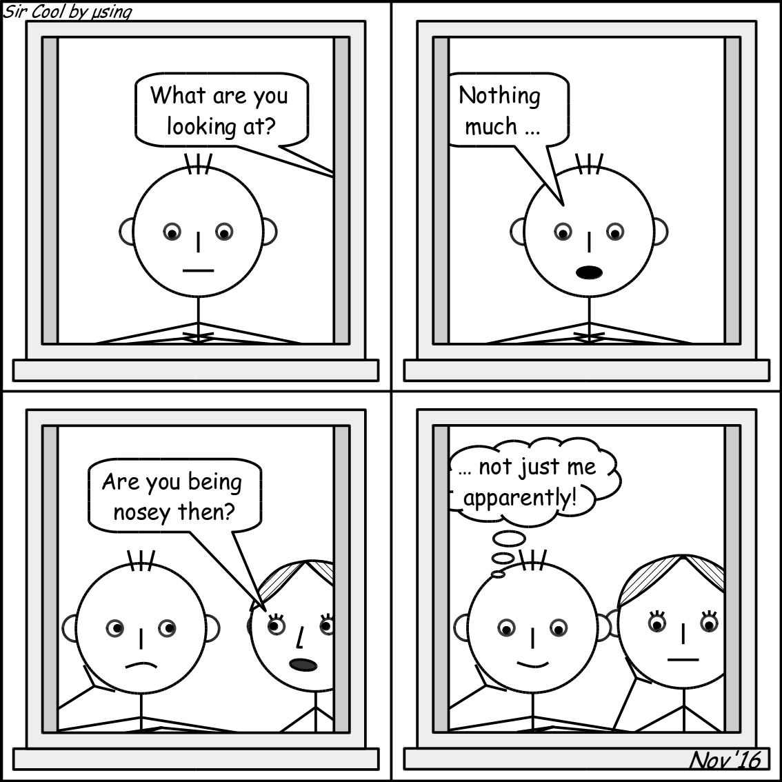 Written by Musing7526th Nov 201626th Nov 2016 Nosey Difficult sometimes not to be a little curious about what is going on outside … Share this:Tweet Click to share on WhatsApp (Opens in new window) WhatsApp Click to email a link to a friend (Opens in new window) Email Like Loading... Leave a comment Cancel reply Δ