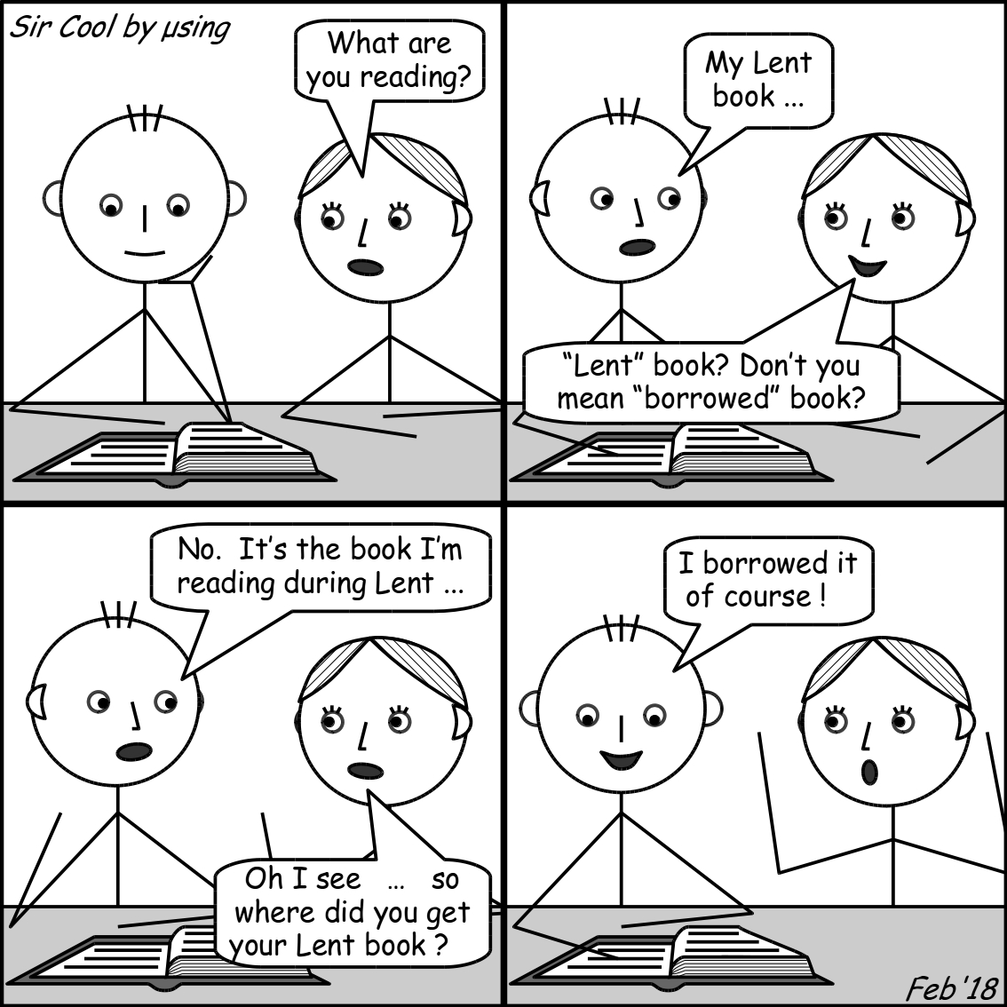 Written by Musing7514th Feb 201814th Feb 2018 Lent I had thought of giving up puns until Easter … Share this:Tweet Click to share on WhatsApp (Opens in new window) WhatsApp Click to email a link to a friend (Opens in new window) Email Like Loading... Leave a comment Cancel reply Δ