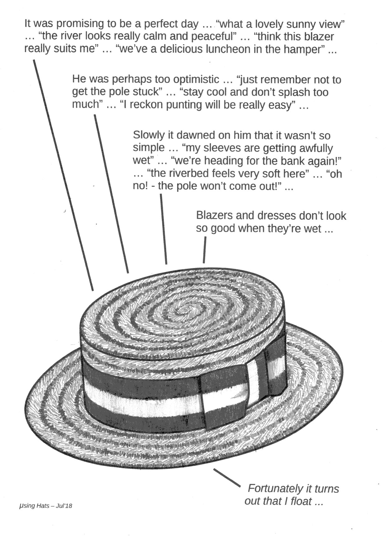 “Punting is not as easy as it looks. As in rowing, you soon learn how to get along and handle the craft, but it takes long practice before you can do this with dignity and without getting the water all up your sleeve.” (from Three Men in a Boat by Jerome K. Jerome, pub. London 1889)