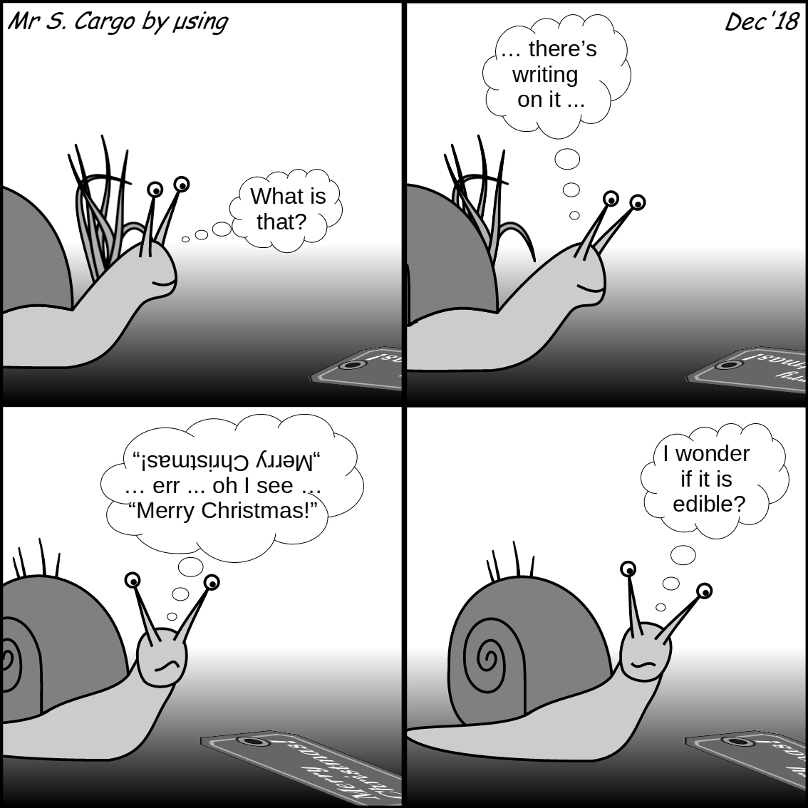 All festive nonsense of course. Any gardener will tell you that snails don’t eat cardboard, and of course not many snails can read at all, let alone upside down! Anyway – as the label says – Merry Christmas too one and all …