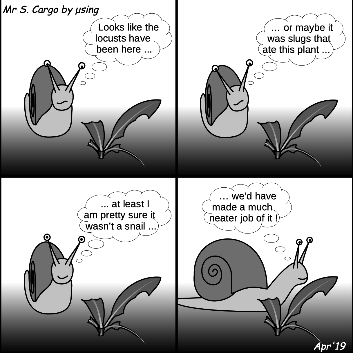 Written by Musing7511th Apr 201911th Apr 2019 Locusts? Personally I’m not quite sure if I know what a “neatly” chewed plant would really look like … Share this:Tweet Click to share on WhatsApp (Opens in new window) WhatsApp Click to email a link to a friend (Opens in new window) Email Like Loading... Leave a comment Cancel reply Δ