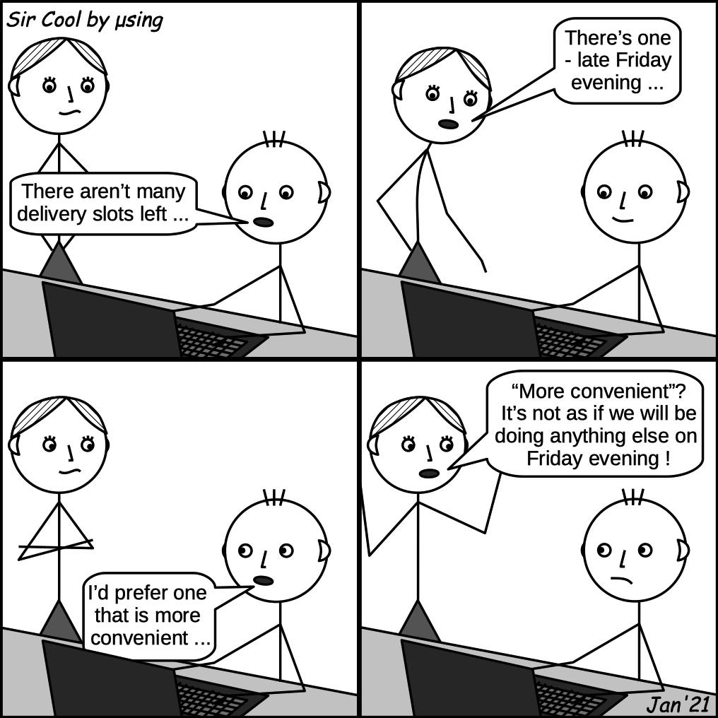 Written by Musing7511th Jan 202111th Jan 2021 Online Shopping (II) Indeed a late night grocery delivery can become the highlight of a lockdown weekend! Share this:Tweet Click to share on WhatsApp (Opens in new window) WhatsApp Click to email a link to a friend (Opens in new window) Email Like Loading... Leave a comment Cancel reply Δ